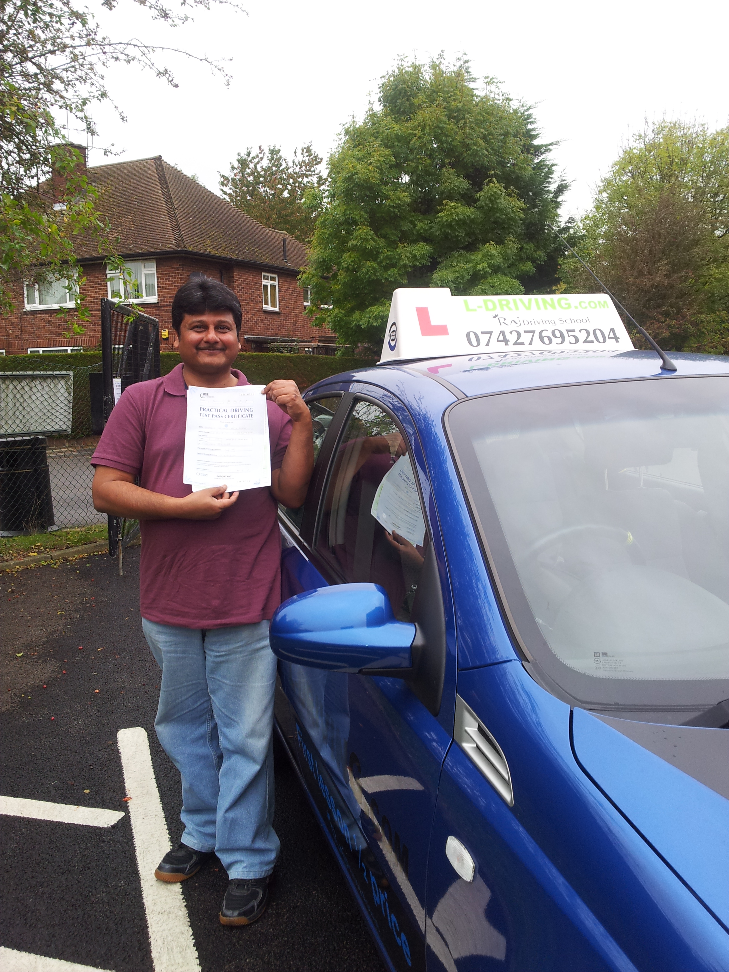 I am just writing to say a big thank you for the important part you played in my passing the exam first time. 'RAJ' One of the best instructors I've seen, been very patient with me from day one and been very inspirational. I passed first time with just 3 minor errors, with his help, best instructor ever,Big thank's RAJ